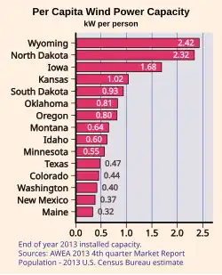 - ^ "Wyoming Wind Energy" (PDF). U.S. Wind Energy State Facts. American Wind Energy Association. Retrieved 27 December 2017.