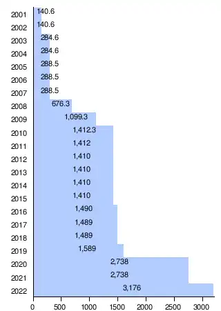 | 2024 | 842.326 | 858.602 | 901.797 | 853.084 | 776.319 | 795.773 | 453.209 | 540.972 | 555.293 | 665.177 | 7242.552 |