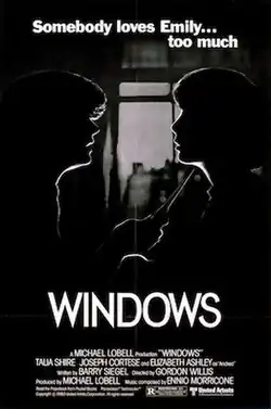 Windows is a 1980 American psychological thriller film directed by Gordon Willis and starring Talia Shire, Joseph Cortese, and Elizabeth Ashley.[2] It was the only film directed by Willis, who was better known as a cinematographer for such films as The Godfather series and several films by Woody Allen.[3]