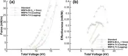 The conventional single dielectric barrier discharge (DBD) actuator design is composed of two electrodes separated by a single dielectric material. Much work has gone into optimizing the design and performance of the single DBD design,[12] however research work continues to improve the performance of these actuators. The MBPA design is an extension of the single DBD actuator design which introduces additional dielectric barriers and electrodes, and thus additional design parameters. Research indicates that MBPA designs may achieve higher resultant thrust and improved thrust-to-power ratios than the single DBD actuator design.[11][13][14] Sample trials of a bi-layer MBPA design demonstrated an approximately 40% increase in effectiveness over the conventional single layer design.[2][13]
