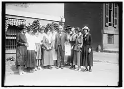 Maud Wood Park was brought to Wisconsin in 1908 by Brown and spoke and helped set up suffrage groups at several colleges.[33] At the end of 1909, WWSA helped circulate a petition for a federal women's suffrage amendment.[33] Within six weeks, they had collected more than 18,000 signatures on the petitions.[33] One octogenarian, Mrs. Wentworth, collected 1,000 names herself.[33] Another women's suffrage organization, the Political Equality League (PEL), was formed in 1911 with Ada James as president.[47] This group was created by members who wanted a more active organization.[48] Youmans did public relations for PEL.[49]