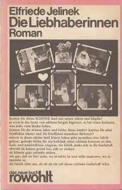 Women as Lovers (Die Liebhaberinnen, published 1975) is a novel by Austrian Nobel laureate Elfriede Jelinek that details the lives of the characters Brigitte and Paula, as the two women transition from dreams of the future, to life with a husband and children.[1] In the novel, Brigitte succeeds in "snagging the social and economic commodity Heinz, which directly results in an upgrading of her socioeconomic status."[2] But she pays for it with her body and the loss of her private autonomy. Paula's existence, on the other hand, is "destroyed by her belief in the illusion of love."[2]