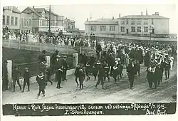 ![]() A procession in Bankastræti in Reykjavík on July 7th 1915 to celebrate women's suffrage. | |
