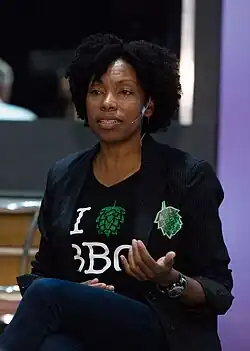 American women such as Jill Vaughn and Rebecca Bennett have been successful at becoming top brewmasters at Anheuser-Busch, where they developed brands such as Bud Light Platinum, Shock Top and the Straw-Ber-Rita.[60] I. Patricia Henry is the first African American woman to manage a major American brewery Miller Brewing Company, now MillerCoors, in Eden, NC. Suzanne Stern Denison and Jane Zimmerman worked at and invested in Sonoma, California's long-shuttered New Albion Brewing, established in 1976 and the first new brewery in America since Prohibition; Jack McAuliffe is most often the only person mentioned as founder.[61] Hart Brewing was co-founded by Beth Hartwell and Tom Baune in 1984 in Kalama, Washington; they were early pioneers of craft brewing in the Pacific Northwest and Hart was the first known woman to co-own a brewery in the post-Prohibition era.[62][63][64][65] Mari Kemper and husband Will opened Thomas Kemper Brewing on Bainbridge Island (near Seattle) in 1985 and now co-own Chuckanut Brewery & Kitchen in Bellingham.[61][66][67] Mellie Pullman is a professor at Portland State University; where she became the first known female brewmaster in the United States when she took a job at Schirf Brewing in Park City, Utah in 1986.[68] Carol Stoudt founded Stoudts Brewing Company in Adamstown, Pennsylvania in 1987; she was one of the first female brewmasters since Prohibition in the country and the nation's first known female sole proprietor. Teri Fahrendorf was the third female craft brewmaster in the country; she worked as a brewer at Golden Gate Brewery and Triple Rock Brewery in Berkeley, California, Steelhead Brewery in Eugene, Oregon.[69][70][71][72] Fahrendorf later founded the Pink Boots Society. Kim Jordan co-founded New Belgium Brewing Company with husband Jeff Lebesch in 1991 in Fort Collins, Colorado.[73] Leah Wong Ashburn took over for father Oscar Wong, who opened Highland Brewing Co. in 1994; it is one of North Carolina's oldest breweries.[74] Mariah and Sam Calagione co-founded Dogfish Head Craft Brewery in 1995.[75][76][77] Natalie and Vinnie Cilurzo, Russian River Brewing's original brewer, acquired the rights to the brand and opened a brewpub in Santa Rosa, California in 2004.[78][61][79] Other women opened early craft breweries in America and have served in numerous capacities other than as the brewer. These include Marcy Larson, who co-founded the Alaskan Brewing Company with husband Geoff in 1986 in Juneau, Alaska; Irene Firmat, who founded Full Sail Brewing Company in 1987 in Hood River, Oregon; Rose Ann Finkel co-founded Pike Brewing Company with husband Charles Finkel in Seattle, Washington in 1989 (and Merchant du Vin in 1978); and Deborah Carey, who founded New Glarus Brewing Company with husband Daniel in 1993 in New Glarus, Wisconsin.[80][81]