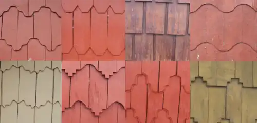 Decorative shingles are more uniform in size and installed in repeating patterns. Illustration from Dictionnaire raisonné de l'architecture française du XIe au XVIe siècle by Viollet-Le-Duc, 1856 -