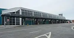 The airport passenger terminal has a total of six gates, four with jetways and two ramp level gates for regional carriers. The gates can accommodate aircraft ranging up to a Boeing 757 in size. The terminal has two baggage carousels and a TSA installed passenger and baggage screening system on the first floor.[38] The airport is equipped to handle up to 250,000 passengers a year in the current configuration and can seat up to 400 passengers at any given time. Currently, the airport has four ticket counters, 2 baggage claims, and four on-site rental car companies. Currently, parking is $7 per day at Worcester Regional. Two Mirage Express cafes are located inside the airport.
