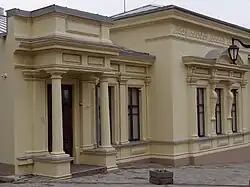 The main facade of the building has a rich decor. The main entrance is accented by a two-columned Doric portico, topped with a rectangular attic. In the interior, the old stucco molding has been partially preserved.[2]