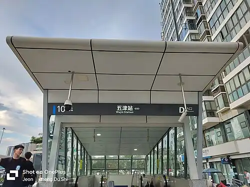 Wujin (Chinese: 五津) is a station on Line 10 of the Chengdu Metro in China. It was opened on 27 December 2019.[1][2]