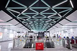 Xiagang station[1] (Chinese: 夏港站; pinyin: Xiàgǎng Zhàn; Jyutping: haa6gong2 zaam6) is a metro station on Line 5 of the Guangzhou Metro in Guangzhou, China. It is located underground on the south side of the fork of Kaifa Avenue (开发大道) and Mingzhu Road (明珠路) in the Guangzhou Economic and Technological Development Zone in Huangpu District.[2] It opened on 28 December 2023, with the opening of the eastern extension of the line.[3]