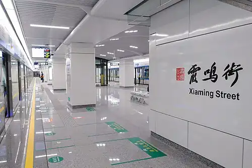 Xiaming Street (Chinese: 霞鸣街) is a metro station on Line 6 of the Hangzhou Metro in China. It was opened on 30 December 2020, together with the Line 6.[1][2] It is located in the Xihu District of Hangzhou.