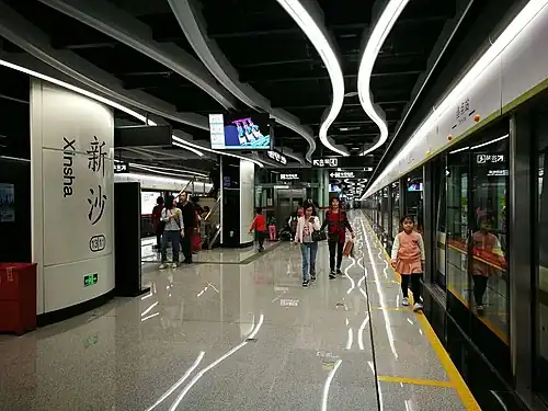 Xinsha station (Chinese: 新沙站; pinyin: Xīnshā Zhàn; Jyutping: san1saa1 zaam6), is a station and the current eastern terminus of Line 13 of the Guangzhou Metro. It started operations on 28 December 2017.[1]