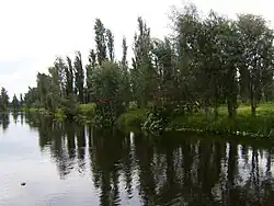 As much of the borough is still classified as an ecological reserve, there are a number of green areas open to the public.[72] These include several “forests” such as the Bosque de Nativitas, the Xochimilco Ecological Reserve, the Centro Acuexcomatl, and Michmani Ecotourism Park.[7] There are several parks designated as forests such as the Bosque de Nativitas and the Bosque de San Luis Tlaxialtemaco. These are considered “areas of environmental value” by the city and established to counter some of the damage caused by urban sprawl in Xochimilco. These areas are open to the public but with minimal services such as picnic tables and horseback riding.[73] The largest ecological area is the Xochimilco Ecological Reserve, inaugurated in 1993. It covers over 200 hectares and is filled with numerous plant and animal species that live or migrate here. The park also contains a bike path, thirty five athletic fields, a flower market and a visitor center. It is second in size only to Chapultepec Park. It is also possible to travel in some of the canals here by trajinera.[20][57] The Centro de Educación Ambiental Acuexcomatl (Acuexcomatl Environmental Education Center) is located on the road between Xochimilco center and Tulyehualco.[15] It contains fish farms, beekeeping, plant nurseries and greenhouses as well as sports facilities, classrooms, workshops, an auditorium, an open-air theatre and a cafeteria. It is in Colonia Quirino Mendoza.[17] Michmani is an ecotourism program sponsored by the borough, which is situated on fifty hectares of chinampas. The site offers kayaking, recreational fishing, a temazcal, cabin rentals and environmental education.[73][74]