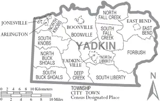 - ^ a b c d Bayley, Elizabeth (2006). "Yadkin County". NCPedia. North Carolina Government & Heritage Library. Retrieved May 14, 2023.