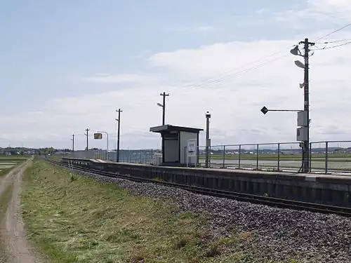 The station consists of a single side platform serving traffic in both directions. There is no station building, and station is unattended.