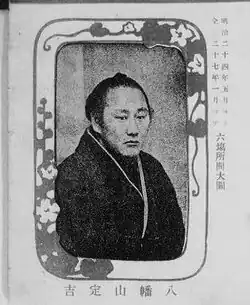Yahatayama Sadakichi (Japanese: 八幡山 定吉; born Hirota Sadaji (廣田 貞次, Hirota Sadaji), May 15, 1858 – March 11, 1914) was a Japanese professional sumo wrestler from Tosa District, Kōchi (now Kōchi, Kōchi Prefecture).[1] He reached the rank of ōzeki in May 1891 and was the first wrestler from Kōchi Prefecture to be promoted at that rank. He remained the only ōzeki from his home prefecture until the promotion of Kunimiyama in May 1905, 14 years later.[2]