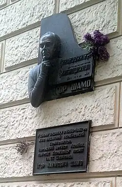 Commemorative coin with a face of Dmytro Lutsenko and name of his poemMemorial plaque of Ihor Shamo in Kyiv with his notes to the song