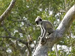 Including Sri Lankan elephant, 44 species of mammals are resident in Yala National Park,[2] and it has one of the highest leopard densities in the world.[11] 25 individual leopards are estimated to roam in Block I.[12] The elephant herd of Yala contains 300–350 individuals.[13] The Sri Lankan sloth bear, leopard, elephant, and wild water buffalo are all threatened mammals that Yala harbours. Although water buffaloes are indigenous to Sri Lanka, most populations contain genes of the domestic stock or have descended from feral populations. Toque macaque, golden palm civet, red slender loris, and fishing cat are among the other mammals that can be seen in Yala. The elephant population of the park varies seasonally.[9]