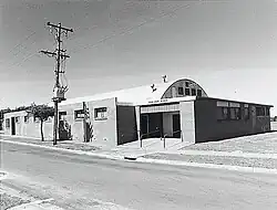 After the Big Slip of 1950, the town's shops temporarily moved into the camp recreation building while a new building was sourced. A Nissen hut was brought in pieces from an SECV work yard on trucks, and erected in Reserve Street. Purvis's, Dobinsons Drapery, Meadows Bakery and a hairdresser moved to the hut. The businesses moved out in turn as they each gained their own new locations. Ernie Pincini from Mirboo North then transformed the Nissen hut into a picture theatre. It was supposed to open in November 1955 but given post-war work shortages and huge labour demand elsewhere, it didn't open until June 1961, not long before the first television transmission to the area by GLV-10, which quickly saw the picture theatre's demise.