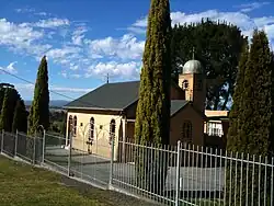 St.James's was built on "the hill", on a site in Reserve Street, and was dedicated on 17 November 1927.[16] When the little town of Morwell Bridge had to go because of the expanding Yallourn coal mine, the Church of England building was shifted to Brown Coal Mine to be used as a hall. On the eve of its removal it was set alight and required considerable repair. It served the township for a time and was later removed altogether. The first clergyman was the Reverend Vizard who was sent from Walhalla to the Brown Coal Mine in 1920.