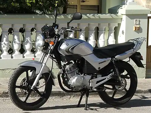 The Yamaha YBR 125 is a light motorcycle made by Yamaha that succeeds its previous model for this segment, the Yamaha SR125. Introduced in 2005, it comes in naked,[1] faired and 'custom'[2] variants. It has a single-cylinder, air-cooled, four-stroke engine, displacing 124 cc (7.6 cu in). Model years up to 2007 use a carburetor system, with 2008 and on models using a fuel injection system.