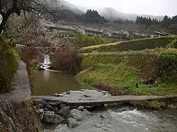 Since 1704, the river was reconfigured, originally its flow was north from the Ishikawa River confluence point, where it joined the Shirinashi River and Kizu River.[1]