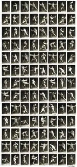 ![]() Yang Chengfu utilizing the single whip technique. | |