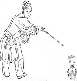 Yang Jiong was born in Huayin in today's Shaanxi province.[4] A child prodigy,[2] Yang Jiong passed the special civil service examination for boys and was awarded with an official appointment to the prestigious Hongwen College in 659, when he was only nine years old.[3] Unlike the other three "paragons", He spent most of his life serving at the imperial court in the capital Chang'an.[2] He later served as the magistrate of Yingchuan County, and became commonly known as Yang Yingchuan (楊盈川). He died under unremarkable circumstances while in office,[4] the only one of the "Four Paragons" to do so.[5]