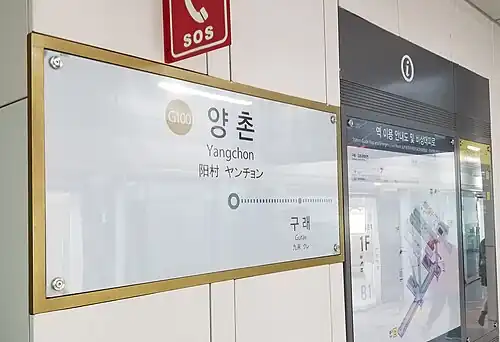 Yangchon Station is a station on the Gimpo Goldline. It opened on September 28, 2019.[1]