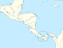 It is endemic to western Panama. Its natural habitat is subtropical or tropical moist montane forest where it is threatened by habitat loss.