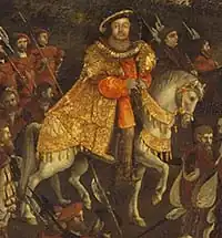 ... we were conducted to the presence, through sundry chambers all hung with most beautiful tapestry, figured in gold and silver and in silk, passing down the ranks of the bodyguard, which consists of 300 halberdiers in silver breast-plates and pikes in their hands; and, by God, they were all as big as giants, so that the display was very grand."[3]: 67 The following year (1520), Henry VIII commanded the Captain of the Guard, Sir Henry Mamey, to select 200 of his tallest men to accompany the King to his meeting with Francis I, king of France, at the Field of the Cloth of Gold. 100 Yeomen were to be mounted on "suitable horses".[3]: 73