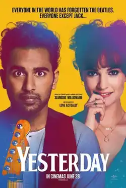 Yesterday is a 2019 jukebox musical romantic comedy film directed by Danny Boyle and written by Richard Curtis based on a story by Jack Barth and Curtis. Himesh Patel stars as struggling musician Jack Malik, who suddenly finds himself as the only person who remembers the Beatles and becomes famous for performing their songs. The film also stars Lily James, Joel Fry, Ed Sheeran, and Kate McKinnon.