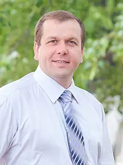 Yevgeny Valeryevich Domozhirov (Russian: Евгений Валерьевич Доможиров; born 28 July 1974) is a Russian politician. He served as a deputy in the Legislative Assembly of Vologda Oblast from 2011 to 2012.[1] He is also known as a former coordinator of Alexei Navalny's regional headquarters in Vologda in 2018 and member of the committee on local self-government issues of the Parliamentary Assembly of the Northwest of Russia. He was the chairman of the Council of the Vologda Regional Public Movement for Human Rights "Together: Freedom, Property, Responsibility".[2] Domozhirov was a member of the A Just Russia — For Truth party until August 24, 2012. Since January 2015, he has been a member of the Central Council of the Russia of the Future party.[3][4]