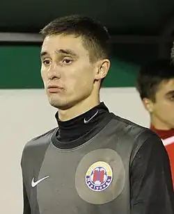 Yevhen Volodymyrovych Halchuk (Ukrainian: Євген Володимирович Гальчук born 5 March 1992) is a Ukrainian professional football goalkeeper who plays for Icelandic club UMF Afturelding.[1]