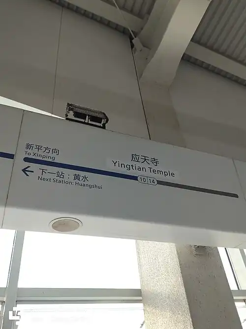 Yingtian Temple (Chinese: 应天寺) is a station on Line 10 of the Chengdu Metro in China. It was opened on 27 December 2019.[1][2]