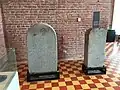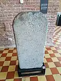 The 1413 stele was erected at Yongning Temple to commemorate its construction by Yishiha. The stele is 179 × 83 × 42 cm in dimensions,[4] and is inscribed on the front with an inscription in Chinese which extols the Yongle Emperor and recounts Yishiha's expedition. On the back of the stele are abbreviated versions of the Chinese inscription written in Mongolian and Jurchen. On one side of the stele, the Buddhist mantra Om mani padme hum is engraved vertically in four different scripts:[4][5]
