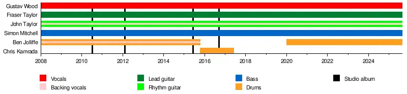While members of the band had been together dating back to 2003, during these years, they were more identified as just a number of musicians who shared a similar passion for music in the same London underground music scene, and did not form as a serious band until 2008.[6][7][8] The band's lineup, upon becoming a formal band, consisted of Gustav Wood as the lead vocalist, Fraser and John Taylor both as guitarists, Simon Mitchell as the bassist, and Ben Jolliffe on drums.[7] The band began playing local live shows at bars and small events featuring music from a variety of different music genre.[9] They eventually began to garner more attention by securing spots in support of post-hardcore bands Funeral for a Friend and We Are the Ocean.[10] This exposure granted them the opportunity to work with Dan Weller and Justin Hill, from the influential progressive metal band Sikth, as producers.[10][11]