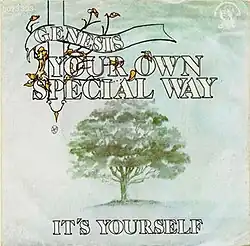 "Your Own Special Way" is a song by the English progressive rock band Genesis. The song was written by the band's bassist and guitarist Mike Rutherford. Released (in edited form) as the first and only single from their eighth studio album Wind & Wuthering, it became the band's first song to chart on the Billboard Hot 100, peaking at number 62.[3] The laid-back nature of the song stood in stark contrast to much of the band's earlier material and foreshadowed many of the band's later hits, such as "Follow You Follow Me" on their next album.