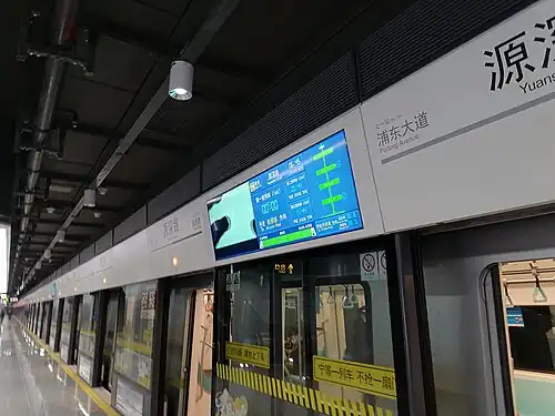 Yuanshen Road (Chinese: 源深路) is a station that is part of Line 14 of the Shanghai Metro. Located at the intersection of Yuanshen Road and Pudong Avenue in Pudong, the station opened with the rest of Line 14 on December 30, 2021.[1]