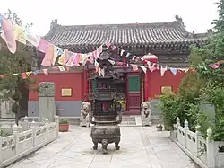 The Dugang Hall (都纲殿) is the third hall of the temple for the worship of a statue of the Indian Buddhist monk Śāriputra/Shilisha.[4] The name of Dugang Hall derives from an official position title "Dugang" (都纲) of the Later Qin (384-417), which in charge of Buddhist temples, Buddhist monks and bestowal of office.[3]