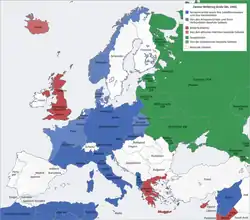 After the French armistice in June 1940, only the United Kingdom seemed to have any chance of winning a fight against the Germans, with even it having a greater chance of negotiating a humiliating peace.[1] Thus, the historian Vladislav Sotirović wrote that "no wonder British politicians and diplomats tried by all means, including military coups, to drag any neutral country into war on their side for a final victory against Hitler's Germany".[1] Yugoslavia had been ruled as a dictatorship by the regent, Prince Paul, since the assassination of King Alexander I in 1934.[2] After the 1938 Anschluss, the German annexation of Austria; the 1939 Italian occupation of Albania; and the accession of Hungary, Romania, and Bulgaria to the Axis Tripartite Pact from 20 November 1940 to 1 March 1941, Yugoslavia was bordered by Axis powers on all sides except the southern border with Greece.[2] All of those factors, combined with traditional Croatian separatism, put Paul in a great psychological, political, and patriotic dilemma: it was becoming impossible to resist Hitler's diplomatic pressures and concrete political offers for Yugoslavia's accession to the pact.[2] Paul could no longer stall since Hitler was in a hurry to start the German invasion of the Soviet Union. Also, the potential of Croatian betrayal during a German invasion was Germany's main argument during these negotiations.[2]