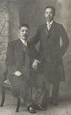 As the second elected Mayor of Tokyo after its administration was separated from the surrounding prefectures, he found himself in an arduous and sometimes disagreeable job—but his determination to make the city better produced noticeable results. Initial infrastructure projects that demanded his attention were wide-ranging: improving water supply and sewage, developing street surfacing, expanding streetcar service, and overseeing gas company mergers.[13] His mayoral position also provided a more ambiguous range of opportunities that included entertaining foreign dignitaries like US Secretary of State William Jennings Bryan and Britain's Field Marshal Lord Kitchener.[14]