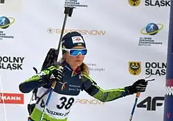 Yuliya Zhuravok (born in Khoten, Sumy Oblast, Ukraine, on 10 November 1994) is a Ukrainian former biathlete. She became junior world champion in 2015, and represented Ukraine twice at the Biathlon World Championships: in 2015 in Kontiolahti and 2019 in Östersund.[1] She also competed at the 2012 Winter Youth Olympics in Innsbruck, Austria, where she was 18th in sprint and 8th in pursuit. Her best World Cup finish was 10th in the individual race in Östersund during the 2016–17 season.