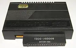 The ZX Interface 1 add-on module, launched in 1983, includes 8 KB of ROM, an RS-232 serial port, a proprietary local area network (LAN) interface known as ZX Net, and a port for connecting up to eight ZX Microdrives – tape-loop cartridge storage devices released in July 1983, known for their speed, albeit with some reliability concerns.[158][159] Sinclair Research also introduced the ZX Interface 2, which added two joystick ports and a ROM cartridge port.[160] Although the ZX Microdrives were initially greeted with good reviews,[161] they never became a popular distribution method due to fears over cartridge quality and piracy.[162]