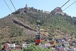 Between Cerro de la Bufa and Cerro del Grillo is an aerial tramway or cable car that provides panoramic views of the city below. This cable car extends for about 650 meters, is called "El Teleférico" and was constructed in 1979 by the Swiss. The ride lasts about eight minutes, but does not operate when there are high winds.[6][19][21][23]