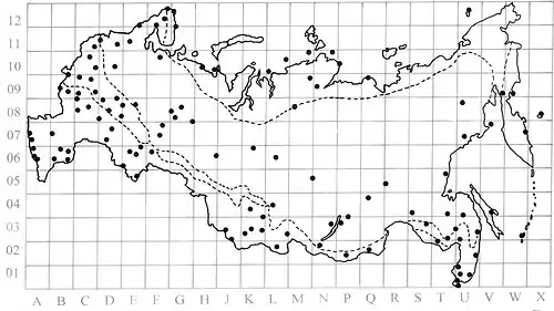 By 1933 there were 15 state zapovedniks in Russia,[15] and by 1995, there were 115. The average area of new zapovedniks declined from 780 km2 in 1916–25 to 110 km2 in 1936–45, and then rose to 5,060 km2 in 1986–95.[16] In 2007 there were 101 operating zapovedniks, reflecting a small number of new ones opened since 1995, but also two periods of closures and contraction of the system. The first of these was planned by Aleksandr Malinovskii; it was carried out in 1951 with a view to turning the zapovedniks into "commercial-and-research" institutions as well as releasing substantial areas of protected forest for commercial exploitation.[17] Over the next 10 years the zapovednik system recovered somewhat, but in 1961 Nikita Khrushchev criticized it, famously referring to a film about them[18] in which a scientist was shown watching a squirrel gnawing a nut.[19] Six zapovedniks were closed and others were amalgamated or reduced in area.[20]