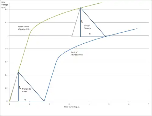 Obtained by measuring the terminal voltage when the current has a zero power factor current using a pure inductive load that could be regulated to compensate the reactive power of the generator EMF.[1]