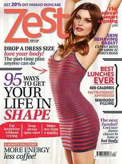 Zest started life as banded-on supplement with Cosmopolitan in Autumn 1994[2] and launched as a monthly magazine in April 1996. Previous editors include Vanessa Raphaely and Eve Cameron and the current editor is Mandie Gower. Zest was guest edited by celebrity figure Elizabeth Hurley in June 2010.[3] Hurley then went on to appear on the cover of Zest magazine in January 2012.