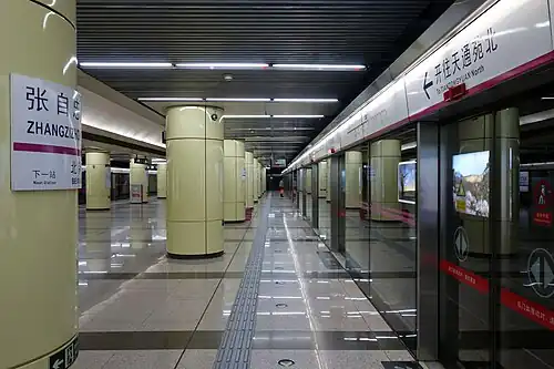 Zhangzizhong Lu Station[1] (simplified Chinese: 张自忠路站; traditional Chinese: 張自忠路站; pinyin: Zhāngzìzhōng Lù Zhàn) is a station on Line 5 of the Beijing Subway. Zhangzizhonglu, literally meaning Zhang Zizhong Road, is named after general Zhang Zizhong, who died in the Second Sino-Japanese War. It will become a transfer station for Line 3 in the future.[2]