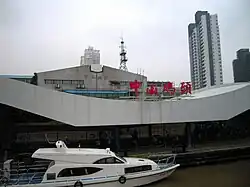 After the People’s Republic of China was founded, the waiting hall of Zhongshan Wharf was expanded, from 370.59 square meters to 775.2 square meters. In 1990, it was rebuilt again, reaching an area of 3,040 square metres (32,700 sq ft).[2]