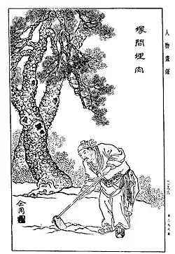 - ^ (鄉人盜訪牛於塚間殺之,訪得之,密埋其肉,不使人知。) Jin Shu, vol.58